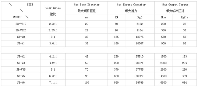 SB-V-1S傘齒輪Series說明如下